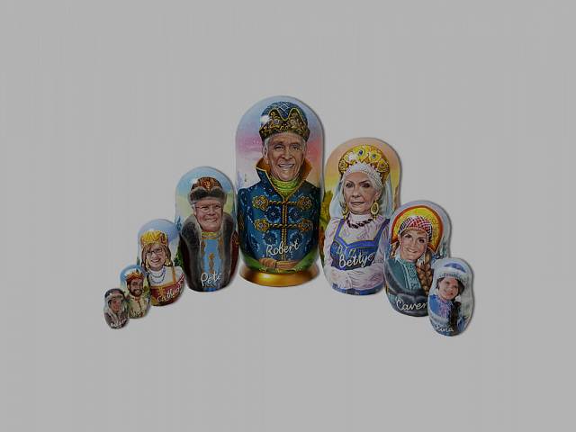 Роспись матрешек по индивидуальному заказу - необычный подарок для близких. Закажите портретную матрешку в подарок руководителю или всей семье. Ручная роспись делает каждую матрешку неповторимой и украсит любой дом.